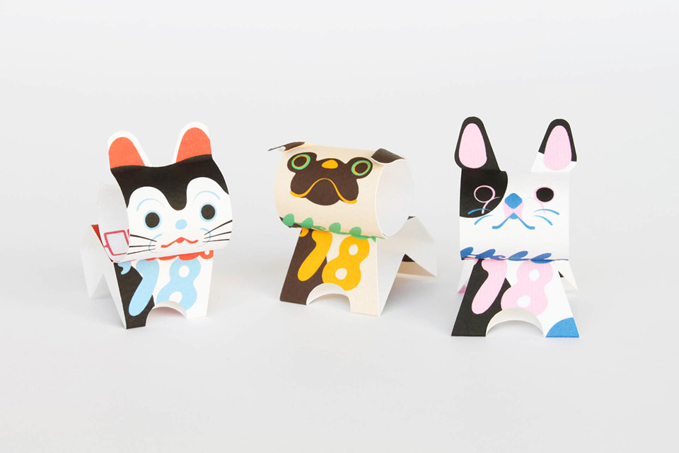 戌年のペーパークラフト年賀状、切って"やまおり""たにおり"して貼り付けるとイヌになる